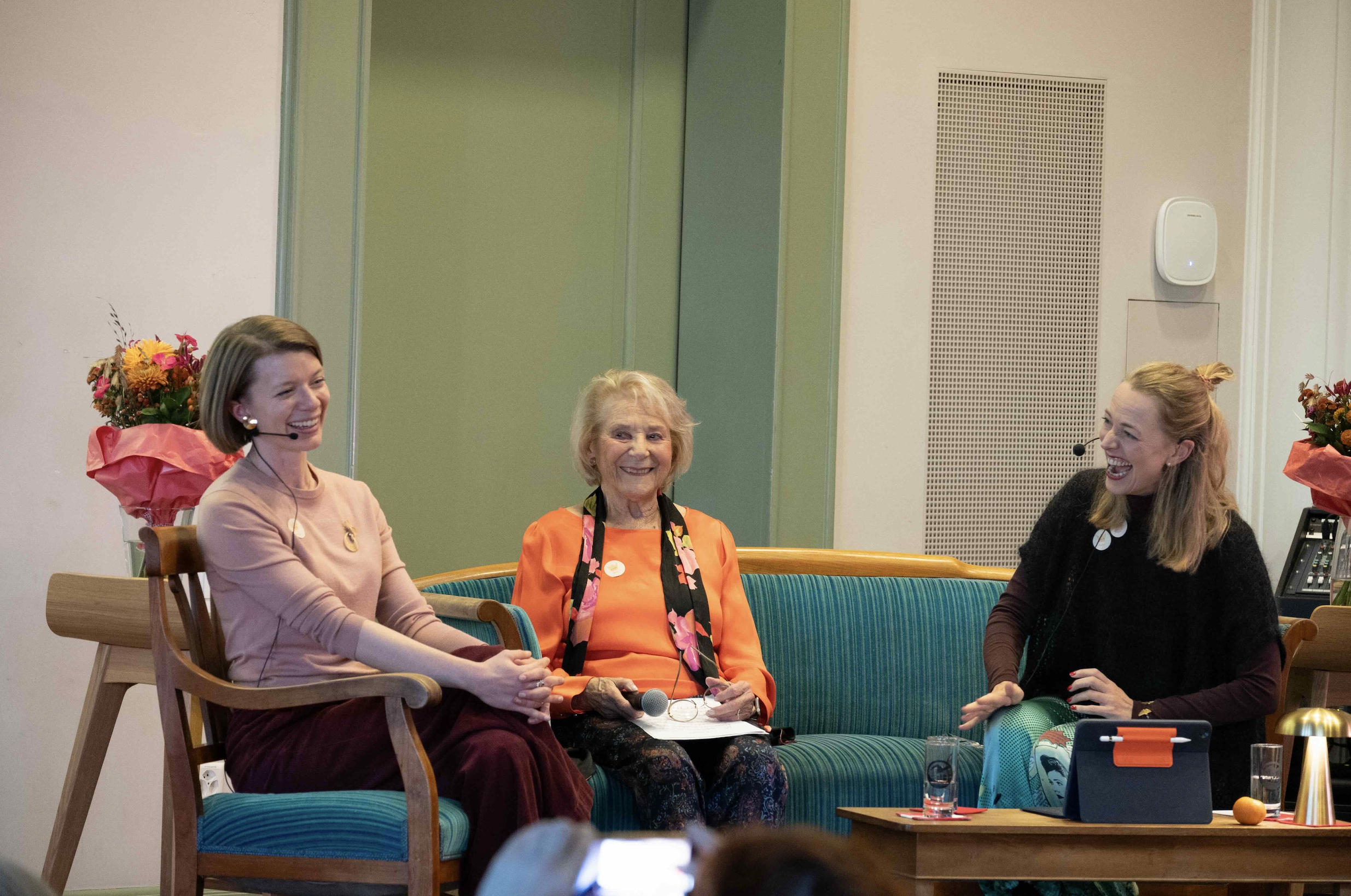 Auf einem Sofa auf der Bühne erzählten die drei mit verschiedenen Gästen von Erinnerungen an das Fest von damals. Immer wieder kamen auch Meldungen und Anekdoten aus dem Publikum, die den Abend lebendig und persönlich machten. Unter ihnen befand sich auch Klara Obermüller (Maturjahrgang 1959), Zeitzeugin der Feier von damals, die von ihrem damaligen Auftritt erzählte und Bilder aus ihrem Fotoalbum mitbrachte.