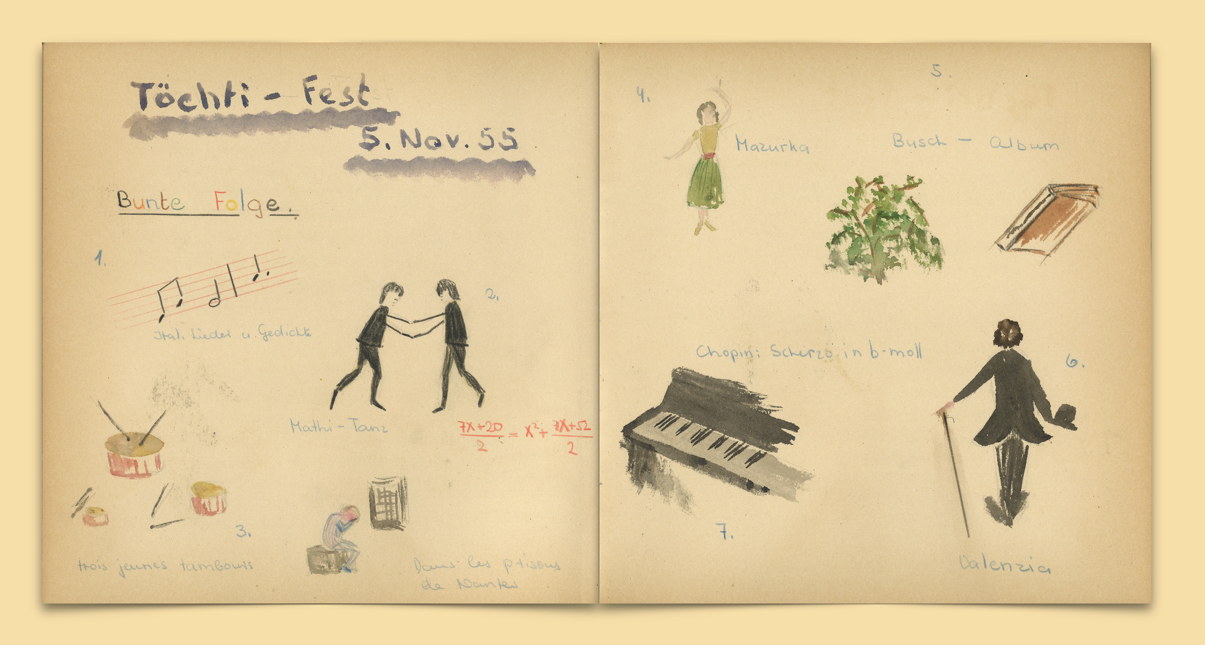 Heidi Diggelmann hatte das Programm des damaligen Fests in ihrem Fotoalbum mit den Programmpunkten und liebevollen Illustrationen festgehalten. Aus diesem Schatz entstand gemeinsam eine sorgfältig und mit viel Herzblut gestaltete Neuauflage.